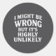 I Might Be Wrong But It's Highly Unlikely Sarcasti Classic Round Sticker