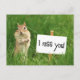 Adorable little chipmunk stands in the tall summer grass next to his sign that reads: I miss you! Perfect for that far away someone special.... totally customisable for you to personalise as you please!