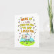 The background of this card is white. From the top downwards is written " Here is a little card for you to say I miss you". The letters are hand drawn, and yellow and orange. The words are framed with little pink and purple flowers.