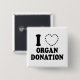 I {MISSING HEART} ORGAN DONATION 15 CM SQUARE BADGE