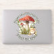 Watercolor illustration of frog and mushrooms with the text "Touching grass is no longer enough. I must touch moss."