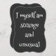 I Myself Am Strange and Unusual Gothic Note Card – Dark Aesthetic Quote Stationery for Tim Burton Fans Express your unique personality with this “I Myself Am Strange and Unusual” Gothic Note Card ✨ Perfect for anyone who loves dark aesthetics, alternative style, or iconic quotes inspired by Tim Burton’s world. This elegant black-and-white design makes a statement — whether you’re sending a thoughtful message, journalling, or gifting it to a friend who embraces the weird and wonderful. 🖤 Features: • Gothic “Strange and Unusual” quote design • Perfect for Tim Burton, goth, and alternative style fans • High-quality print and premium paper • Ideal for journalling, letters, or as a small art piece • Great for birthdays, Halloween, or just because 🎁 Perfect for: • Goths, artists, and creative souls • Fans of Beetlejuice and spooky aesthetics • Halloween or alternative gift occasions • Stationery collectors who love unique quotes