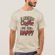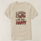 The minimalist design displays the phrase "I need coffee to be happy" in large letters in cream and pink tones, creating a soft and pleasant contrast. The clear and legible arrangement of the letters highlights the main message. The combination of soft colors reinforces the feeling of warmth and satisfaction that coffee evokes, conveying the idea that this drink is essential to achieving happiness.