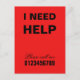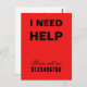 I need help Neighbourhood Assistance SOS message asking for help, communicate with others send them this postcard to let them know you are in need of help, Bright Red Postcard, you can change or delete all back side text and you can add your phone number on the front side.
