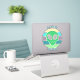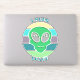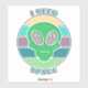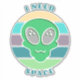 Retro colours blue, green and purple with a vintage sunset and alien face. Funny extra terrestrial pun, "I need space."