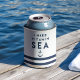 Heading out to a beach party, cruise or boat trip? Keep your favourite beverage cool in our nautical style can coolers. Summery navy and white design features the quote "I Need Vitamin Sea" in navy blue lettering with an anchor illustration and nautical navy stripes.
