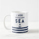 Suffering from a vitamin "sea" deficiency? Sip your morning coffee or tea from our cute, summery nautical mug featuring "I Need Vitamin Sea" in navy blue lettering with an anchor illustration and nautical stripe border.