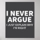 I Never Argue Just Explain Why I'm Right Funny Sar Poster