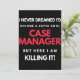I Never Dreamed I'd Become A Super Cool Case Manager But Here I Am Killing It design. This is a short funny quote which is great as an appreciation gift for Case Managers. Also suitable as Case Manager Gifts.