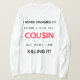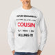 I Never Dreamed I'd Become A Super Cool Cousin But Here I Am Killing It design. This is a short funny quote which is great as an appreciation gift idea for Cousins. Also suitable as Cousin gifts for Christmas or Birthday.