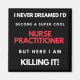 I Never Dreamed I'd Become A Super Cool Nurse Practitioner But Here I Am Killing It design. This is a short funny quote which is great as an appreciation gift idea for Nurse Practitioners. Also suitable as Nurse Gifts.
