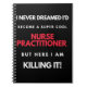 I Never Dreamed I'd Become A Super Cool Nurse Practitioner But Here I Am Killing It design. This is a short funny quote which is great as an appreciation gift idea for Nurse Practitioners. Also suitable as Nurse Gifts.