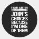 I Never Question John's Choices Because I'm One Of Classic Round Sticker