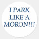 I PARK LIKE A MORON!!! CLASSIC ROUND STICKER