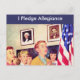 Vintage artwork of several children in school pledging allegiance to the United States flag. "I pledge allegiance to the Flag of the United States of America, and to the Republic for which it stands: one Nation, under God, indivisible, with Liberty and Justice for all." 1954 version