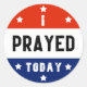 In the style of the "I Voted" stickers this one says in red whit and blue aesthetic "I PRAYED TODAY." Adorned with white stars.