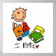 A cute stick figure design featuring a male stick figure with a book and text that reads "I Read" on T-shirts, hoodies, mugs, magnets, tote bags, and more.