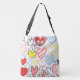 This super unique crossbody bag features various colourful hand-drawn hearts. Please feel free to customise all the available options as you wish.