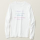 I love this shirt. I had written to the artist asking her if this picture was available on a shirt, and she wrote me back telling me where I could find the shirt. These shirts can be custom made to have a different saying. I loved this saying and went with it. The artist wrote me back later to tell me that she had seen my order go through. How's that for service? Pretty special. It's just as displayed. Perfect!