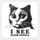 This funny graphic design features the face of a suspicious cat accompanied by the comical quote "I See Dumb People". It will add a touch of humour and personality to your style, making it a must-have for cat lovers who enjoy witty and playful designs.