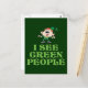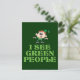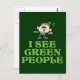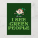 This cute St. Patrick's Day design features a wee leprechaun dressed all in green and the caption "I See Green People" in large green text.