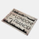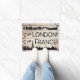 Comical doormat for greeting your unsuspecting guests. They might think twice about stepping on this hilarious entry mat. Even though you really can't see their underwear (hopefully), it's a funny way to adorn an entryway. Cool rustic faux wood finish with a black letter graphic that shows iconic places and things you would expect to see in London and France.
