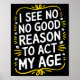 I See No Good Reason To Act My Age - Funny Sarcast Poster
