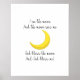 Use the the I See the Moon Poster to decorate your kids room with this old nursery rhyme. A simple moon center the poem. A perfect addition to a nursery or star themed room.