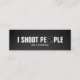 Funny "I shoot people" Professional Photographer Camera Lens Business Card. With Silver faux Metallic Background.