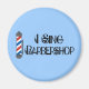 A barber pole with music slogan that says I Sing Barbershop comes on this fun barbershop lover gift. Art c. Ne' Metzger.