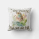 I Sing Because Jesus Set Me Free Throw Pillow featuring a bird on a bough of flowers. Christian home decor. Sing away. Make your home a pleasant place to be happy. Set the mood with a testimony to friends and family and a personal encouragement to you. Makes a great housewarming gift, baptism gift, Christmas gift or purchase for any occasion. Share your faith. Brighten your home and your life.