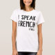 This I Speak French (Fries) shirt is meant to be worn by a funny woman who pretends to be someone who speaks French, but when you take a closer look you see that it's a joke.