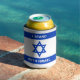 I stand with Israel custom text Israel flag blue and white modern pattern patriotic Can Cooler.