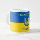 I Stand with Ukraine. Ukrainian flag. Coat of Arms. Trident. Tryzub. Specialty jumbo coffee mug.