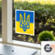 I stand with Ukraine. Ukrainian flag. Trident - Coat of Arms of Ukraine. Supporting Ukraine.