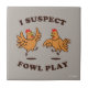"I Suspect Fowl Play" chicken graphic designed by bCreative shows a pair of brown chickens playing around! This makes a great gift for family, friends, or a treat for yourself! This funny graphic is a great addition to anyone's style. bCreative is a leading creator and licensor of original, trendy designs and properties. ©LCT Creative. License from bCreative.com