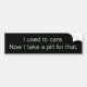 I used to care, now I take a pill for that. Humorous bumper sticker.