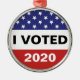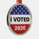 Be proud you voted with this patriotic ornament. The design features red and white stripes with white stars on blue. It reads I voted 2024.