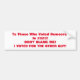 I Voted For The Other Guy! Bumper Sticker