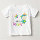This super cute child's ruffled shirt has a cartoon bird dressed up as a unicorn with the words "I wanna be a unicorn" in multi-coloured lettering.