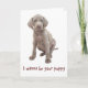 A lovely weimaraner puppy with blue eyes and the phrase "I wanna be your puppy"