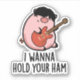 I Wanna Hold Your Ham Funny Pig Pun features a cute pig with 60s hair and holding a bass guitar. Perfect pun gift for family and friends who love cute song and pig puns.