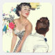 Artist:Joe DeMers | Woman in a zebra striped dress and red flower pin leaning over in a chair talking to a man in a white suit