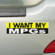 I Want My MPGs Bumper Sticker: mpg miles per gallon gas price prices oil barrel diesel fuel mtv commercial quote quotes saying sayings drive right pass left drive driving car cars on road rage truck trucks suv suvs traffic light lights commute commuting commuter commuters highway freeway toll tolls booth highways freeways street streets roads avenue avenues boulevard boulevards speed speeding