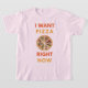 Slogan: "I want pizza right now!". It's a funny thing about people that want a pizza on the table and she's not there so they're complaining for it lol. A must have for pizza lovers.
