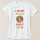 Slogan: "I want pizza right now!". It's a funny thing about people that want a pizza on the table and she's not there so they're complaining for it lol. A must have for pizza lovers.