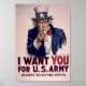 A World War I poster showing Uncle Sam pointing his finger at the viewer in order to recruit soldiers for the Army during World War I. The printed phrase "Nearest recruiting station" has a blank space below to add the address for enlisting. Created by James Montgomery Flagg.