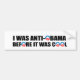 I WAS ANTI-OBAMA BEFORE IT WAS COOL BUMPER STICKER