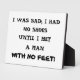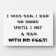 A plaque with the script " I was sad, I had no shoes until I met a man with no feet!" Food for thought for all