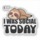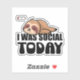 ''I Was Social Today" Funny Sticker meaning My Social Battery is Drained with Sleepy sloth illustration